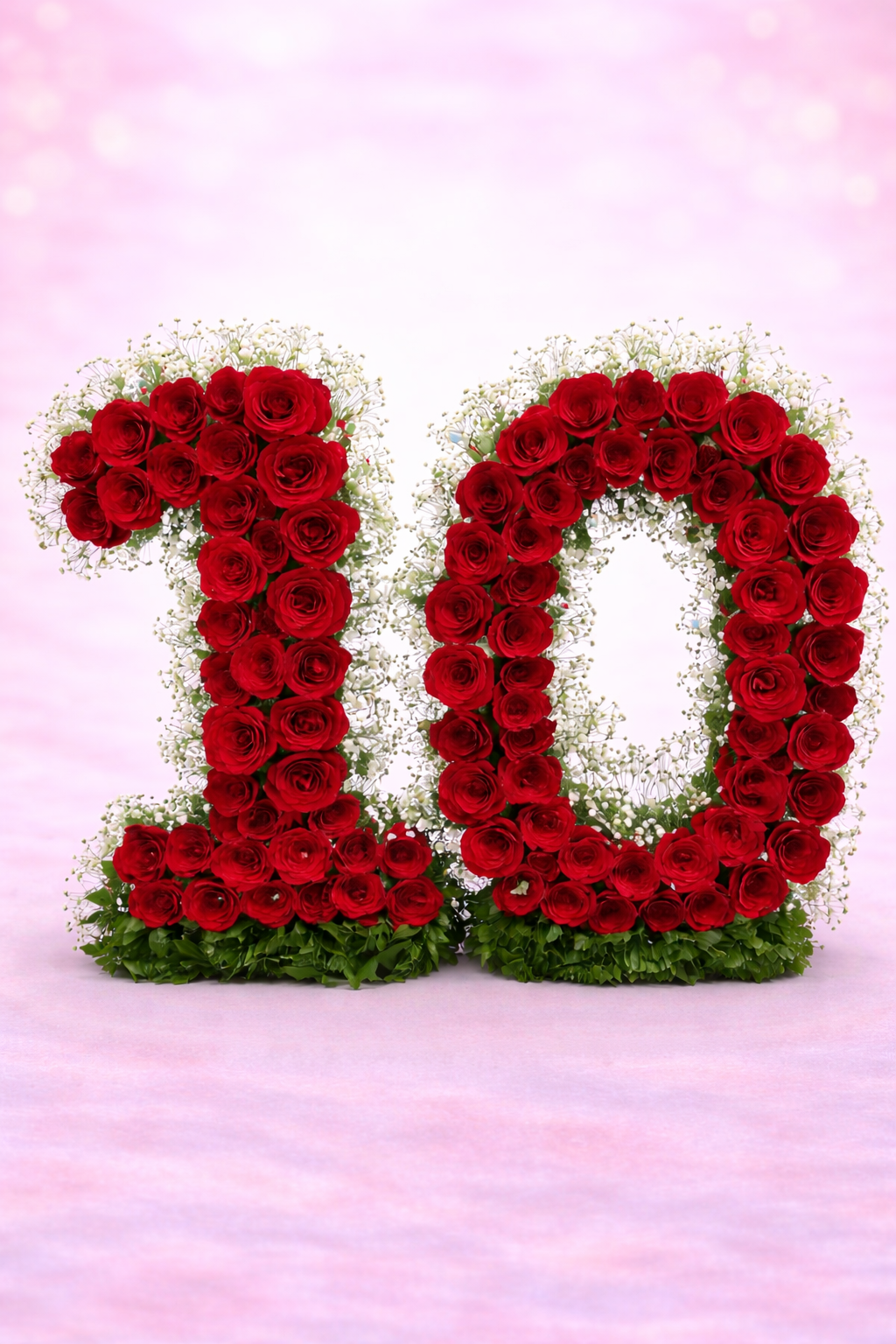 Make your milestones unforgettable with this bespoke floral installation. Crafted with high-quality red roses, this display can be customized to any two-digit number, making it the perfect centerpiece for birthdays, anniversaries, or corporate milestones.
